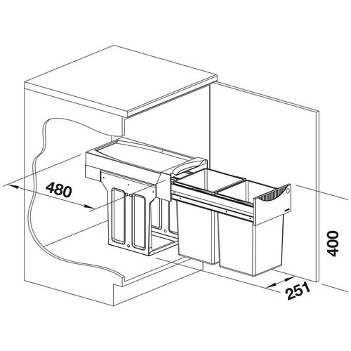 Sistem za odvanjanje i odlaganje otpada smešten iza vrata kuhinjskog ormarića | |