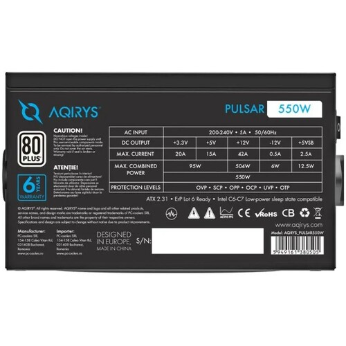 - AQIRYS Pulsar 550W - ARGB 80+ Bronze