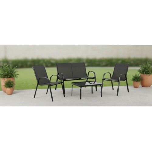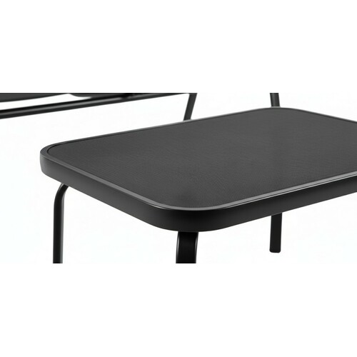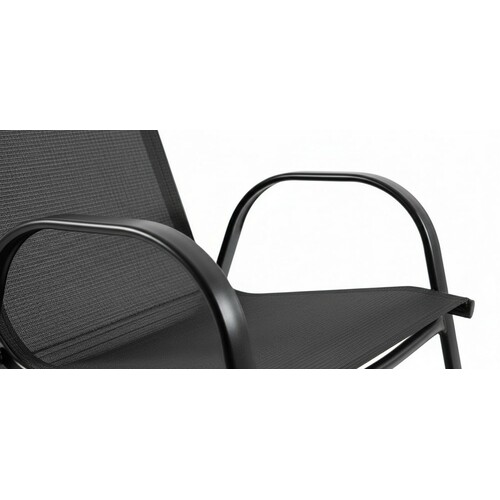| Konstrukcija od kvalitetnog čeličnog što obezbeđuje stabilnost i dug vek trajanja. Sedišta i nasloni od izdržljive dvostruke Textilene mreže koja pruža udobnost i otpornost na vremenske uslove. Sto je opremljen silk-print staklenom pločom, elegantnom i lakom za održavanje. | |