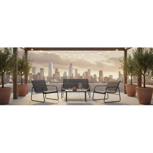 | Ova garnitura odiše minimalističkim, modernim linijama i neutralnim tonovima koji se lako uklapaju u bilo koji stil uređenja eksterijera. Ergonomski oblik stolica i dvoseda pruža odličnu potporu leđima i udoban položaj tokom sedenja. | |