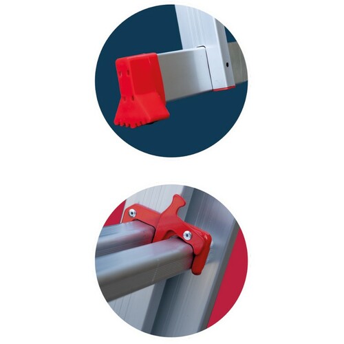 | Dvodelni sistem – može se koristiti kao samostojeće merdevine (u obliku slova A) ili naslonjene na zid | |