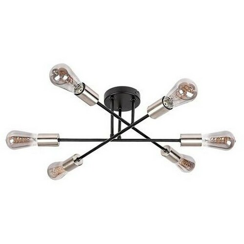 - RABALUX Branwen,mat crna, satenska hromirana metalna plafonska lampa, E27 6x25W IP20