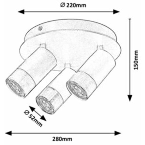 RABALUX Zircon, unutrašnja metal plafonjera spot, 3xGU10