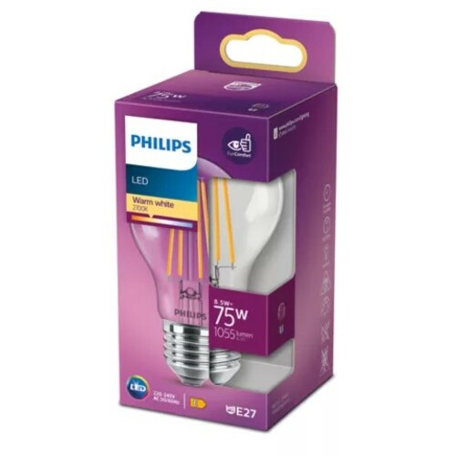 - PHILIPS classic 8,5W(75W) E27 WW 2700K A60 CL ND RFSRT/4