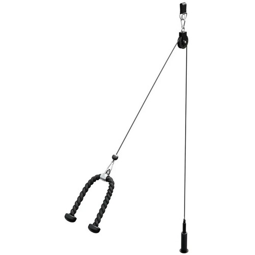 | Lat sistem za plafon Kabelski lat sistem za plafon – univerzalna sprava za kućni trening Unesi profesionalni nivo u svoj kućni trening uz Gorilla Sports lat sistem za plafon. Ova kompaktna i funkcionalna sprava pruža ti mogućnost da odradiš raznovrsne vežbe za leđa, triceps, bicepse i ramena – baš kao u teretani. Zahvaljujući čvrstom čeličnom kablu i triceps užetu, ovaj sistem je izuzetno izdržljiv i jednostavan za montažu, a njegova nosivost do 150 kg garantuje bezbedno i efikasno vežbanje. Idealno rešenje za sve koji žele da maksimalno iskoriste prostor, jer zauzima vrlo malo mesta. Prednosti | Maksimalna nosivost do 150 kg – stabilnost i sigurnost pri svakom treningu Triceps uže uključeno za raznovrsne vežbe ruku i leđa Kompaktan dizajn – idealan za kućnu upotrebu Robusna konstrukcija od čelika i najlona za dugotrajnost Jednostavna montaža i kompatibilnost sa različitim ručkama za kablove Za koga je namenjen? Lat sistem za plafon je odličan izbor za sve koji žele jača leđa, definisane ruke i snažna ramena. Pogodan je kako za početnike, tako i za napredne vežbače koji žele profesionalne rezultate u udobnosti svog doma. Tehničke specifikacije Kabel: dužina 2 m Triceps uže: dužina 70 cm Nylon spojni deo |