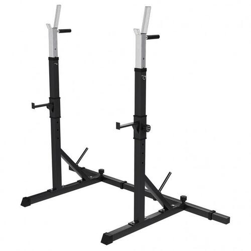 | Podesivi stalak za čučnjeve – Crni Višenamenski stalak za ozbiljan trening kod kuće Iskoristi pun potencijal svog kućnog treninga uz ovaj multifunkcionalni stalak za čučnjeve. Bilo da treniraš snagu, masu ili definiciju, ovaj stalak omogućava izvođenje različitih vežbi kao što su čučnjevi, benč pres, mrtvo dizanje i iskoraci. Čvrsta konstrukcija i mogućnost podešavanja visine čine ga idealnim rešenjem i za početnike i za iskusne vežbače. Tehničke specifikacije | Dimenzije (D x Š x V): 79 × 150–190 × 133 cm Razmak između stalaka: 72 – 97 cm Visina sigurnosnih držača |