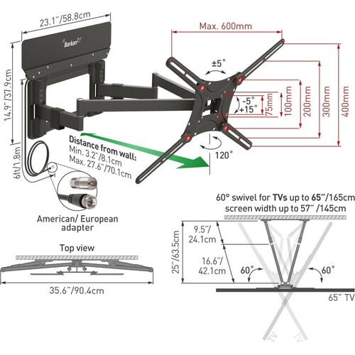 | Podržane dijagonale | 13" - 90" |